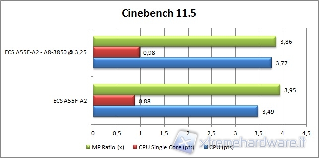 Il test è stato effettuato con un AMD A8-3850 che possiede un moltiplicatore bloccato verso l’alto, impostato per default a x29 avente un BUS pari a 100MHz.